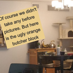 With most of the kitchen remodeled and the lighter colors our kitchen looks bigger which is good because, like I have said before, we have a small kitchen. I thought our kitchen was complete but our countertop came out so well we decided that we wanted to get them clear of appliances. So Chelsie went on an organization mission and was able to reorganize our closet, butcher block and cabinets to maximize efficiency. It also helped that we got rid of a 8 person dish set. Complete with dinner plates, appetizer plates, bowels, tea/coffee cup with the saucer, two serving dishes, a cream and sugar set and.... I think that is it... yeah, that was all. But it took up way too much cabinet space. I think it is best she share pictures and videos of her organization tips.